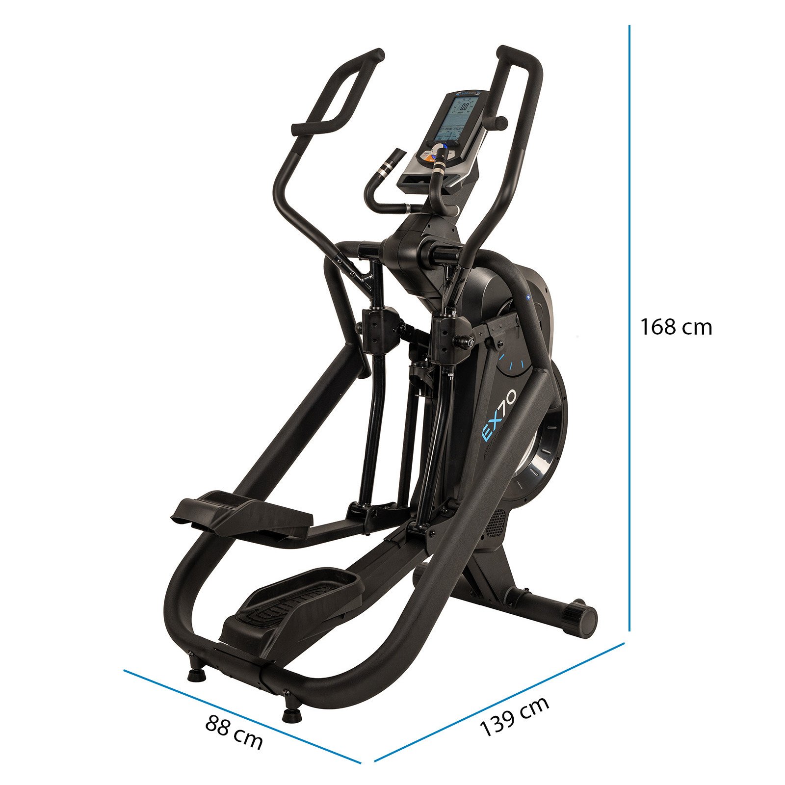 - Aufstellmaße – cardiostrong Crosstrainer EX70: (L) 139 cm x (B) 88 cm x (H) 168 cm
