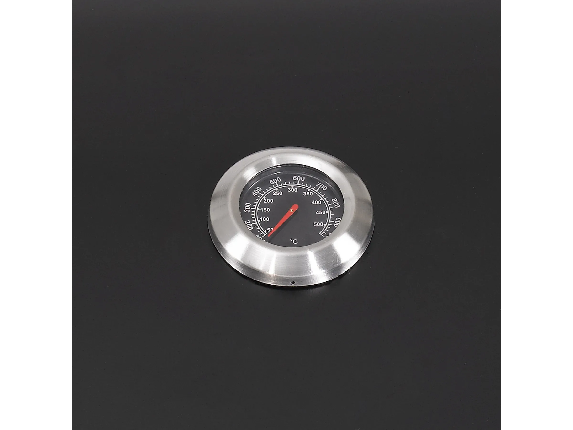 Der Deckel ist kräftig gebaut, sodass er Hitze gut speichert. Er lässt sich leicht öffnen und sicher schließen – ein hochwertiger, hitzeisolierter Griff sorgt dafür, dass man den Deckel auch während des Betriebs ohne Verbrennungsgefahr anfassen kann. Ein eingebautes Thermometer im Deckel ermöglicht die Überwachung der Garraumtemperatur, ohne den Deckel unnötig oft öffnen zu müssen – das spart Energie und sorgt für gleichmäßige Grilltemperaturen.