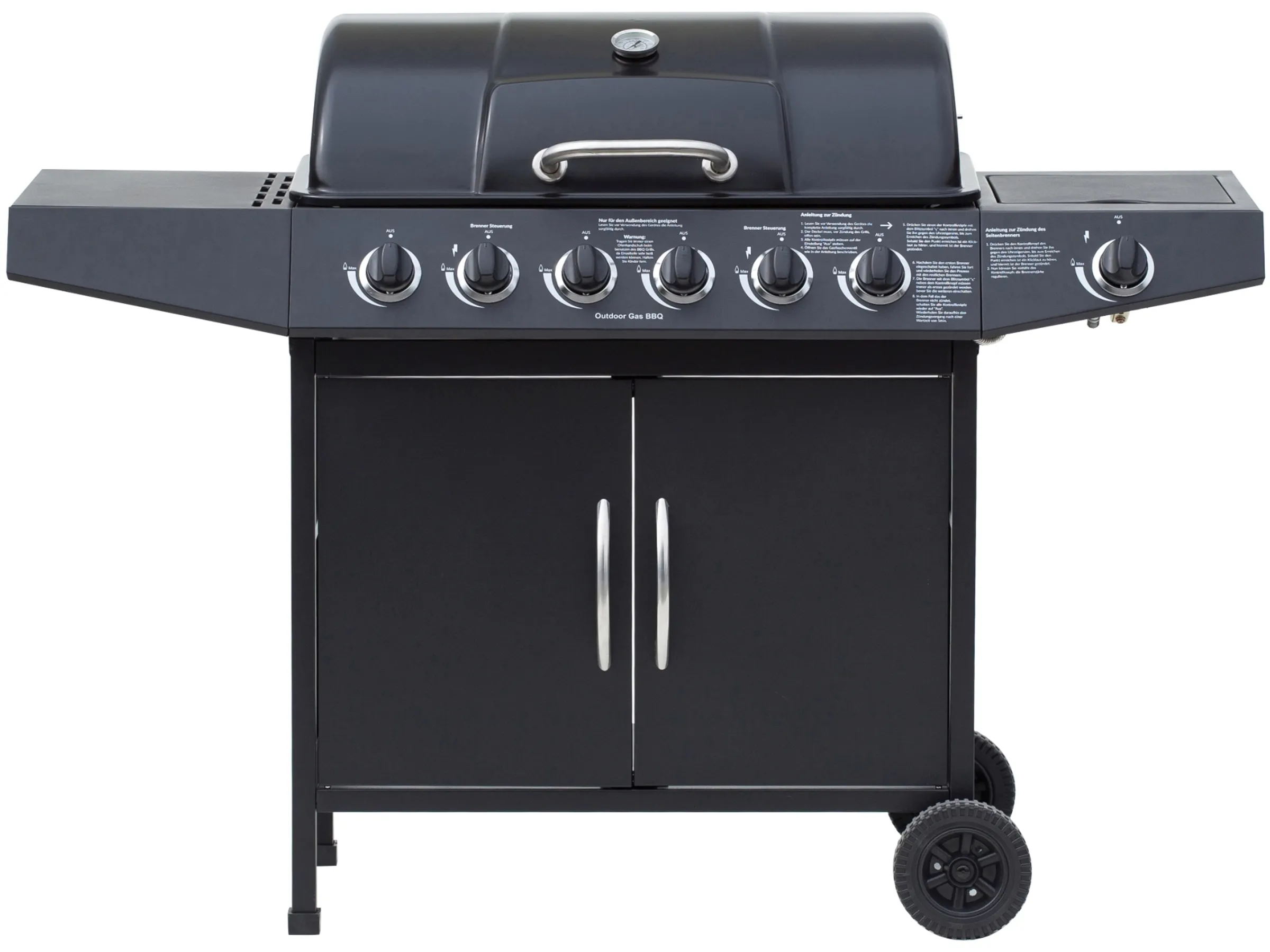 – 6 Hauptbrenner je 2,5 kW + 1 Seitenbrenner 2,3 kW (insg. 17,3 kW)